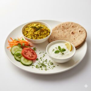 1. दाल + हल्की सब्ज़ी + 1 मिलेट रोटी